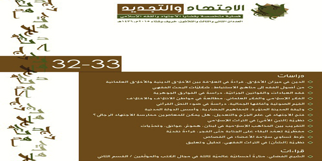قراءةٌ في العدد المزدوج (32 ـ 33) من مجلّة الاجتهاد والتجديد قراءةٌ في العدد المزدوج (32 ـ 33) من مجلّة الاجتهاد والتجديد 12 نوفمبر، 2015 75 زيارة شاركها Facebook Twitter شاركها Facebook Twitter
