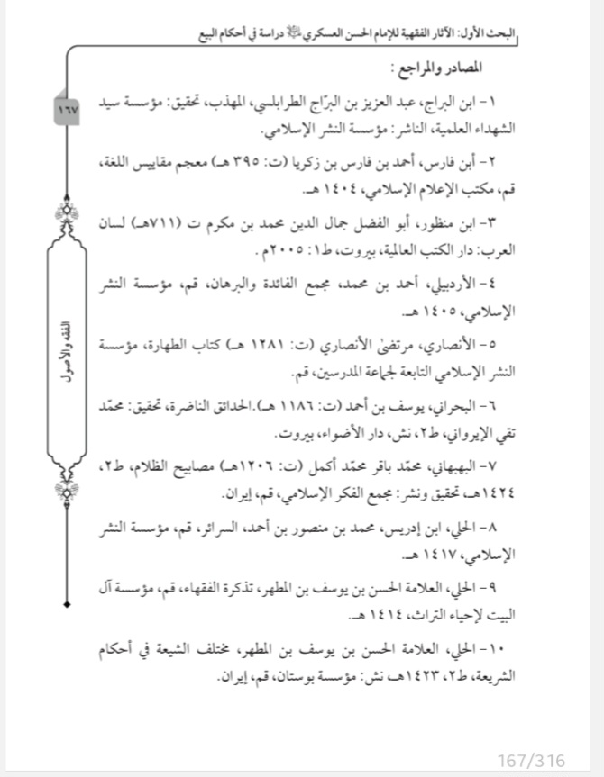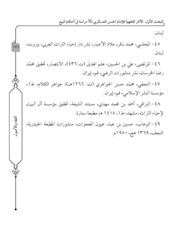 وأعتمد الباحث في تقسيم بحث “الآثار الفقهية للإمام الحسن العسکری” دراسة في أحکام البيع ” إلى مطالب ثلاث مشفوعة بمقدمة وخاتمة ونتائج للبحث.